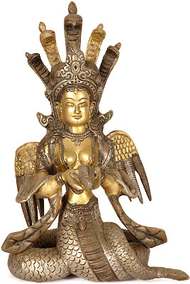 I Nāga sono creature che vivono in un misterioso, quanto ricco, regno sotterraneo. Hanno la capacità di assumere sia la piena forma umana che la piena forma serpentina e sono associati in genere all’acqua e a tutti gli eventi (positivi e negativi) ad essa correlati. Per accedere alle misteriose città dei Nāga si dovrebbe cercare sul fondo dei laghi o dei fiumi più profondi. Sono esseri positivi tranne per coloro che danneggiano deliberatamente l’ambiente. In tutto il mondo asiatico compaiono quindi in associazione al concetto di fertilità, al ciclo di piogge che favorisce abbondanti raccolte, ma anche alle tremende alluvioni di alcuni grandi fiumi.