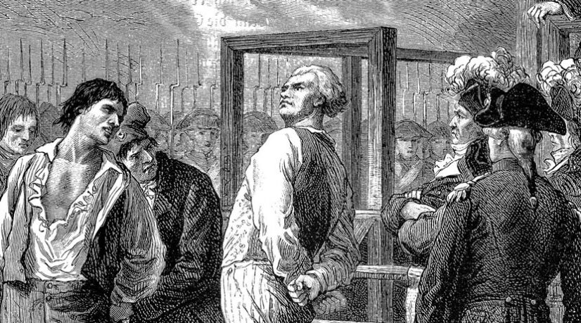 Non fa una piega. Marciamo in strade deserte in un città che mi ricorda un posto già visto, ma che non riesco a definire in pieno. Man mano che avanziamo mi sembra che le nostre fila vadano aumentando, da dove arriva questa gente in più? Certo non dalle strade deserte… faccio fatica a capire. Arriviamo infine in una piazza dove spicca un’enorme, gigantesca, ghigliottina. La circondiamo e ci fermiamo. E ora?