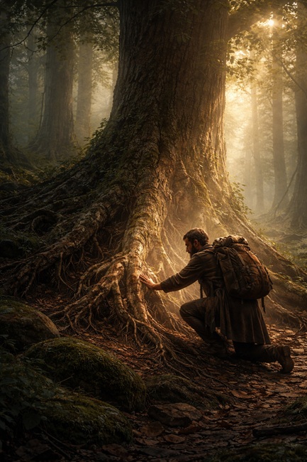 Un’immagine nitida nella mente del viaggiatore: la mano che affonda nel terreno, che cerca tra le foglie cadute e trova infine le radici dell’albero. E l’albero che aiuta il viaggiatore a rialzarsi, a fare un tratto di strada in più. Fino all’albero successivo.